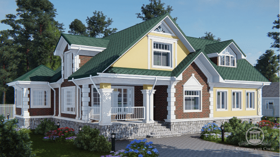 3. Разработка дизайна дома с учетом уже примененного материала (кровля, цоколь и тд).